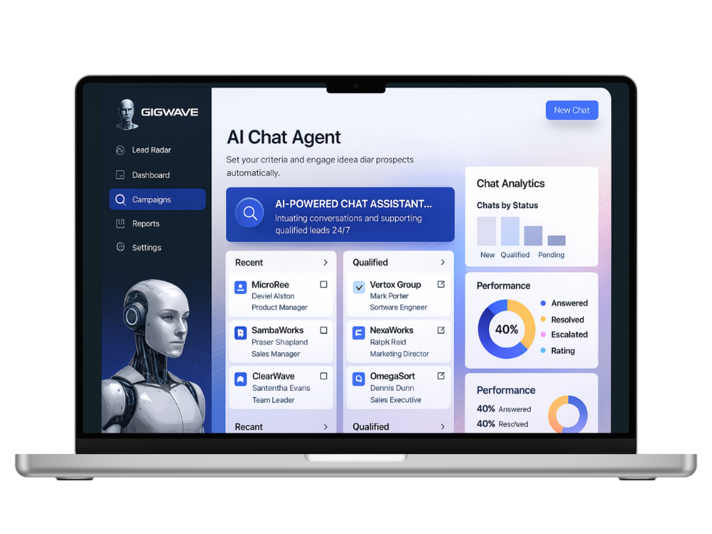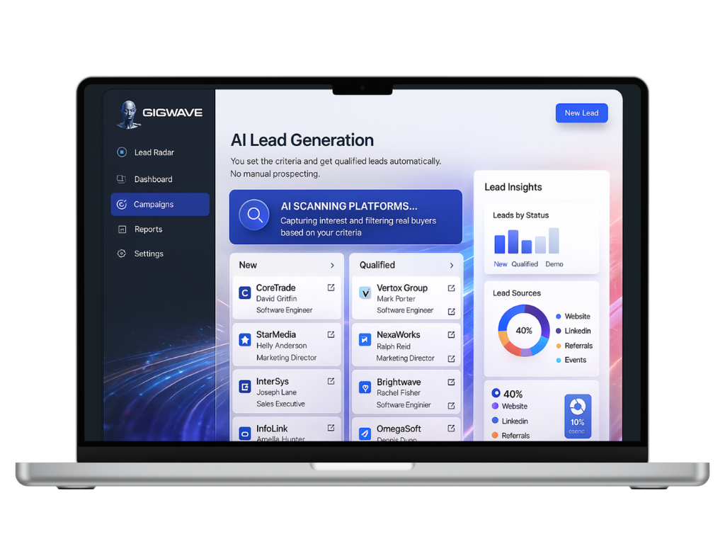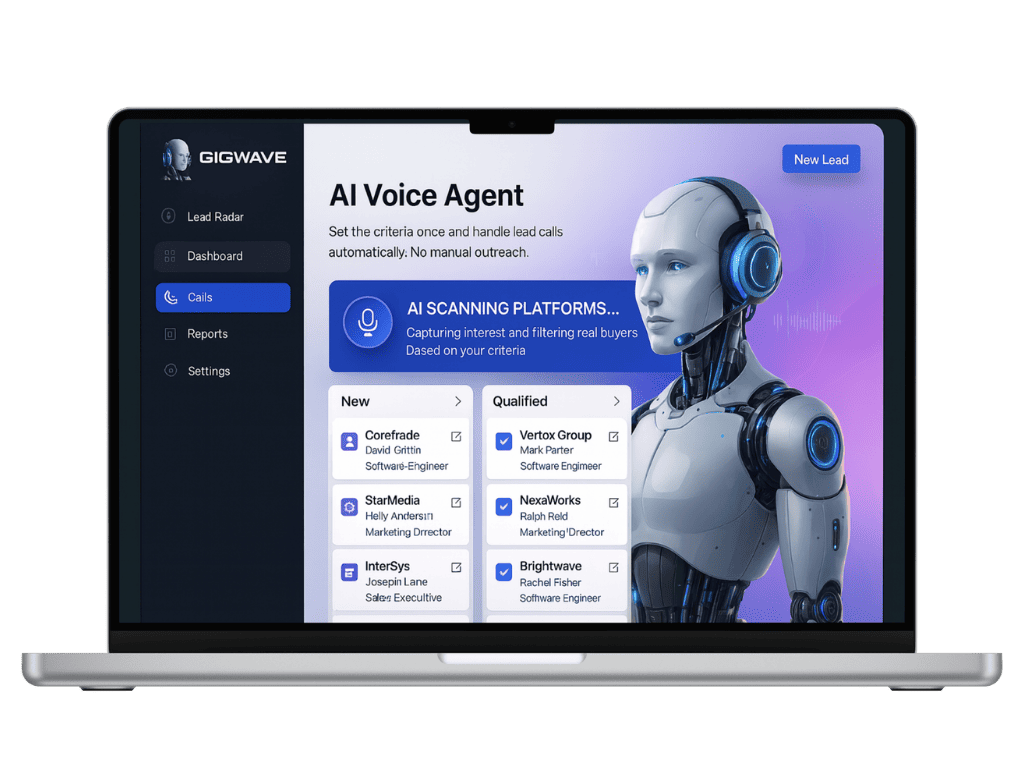 ““A complete system that keeps our agents busy with real leads.” We integrated Gigwave’s Lead Agent, CRM Core, and Voice Bot to automate lead qualification and appointment booking. Our sales consultants now focus only on serious buyers while Gigwave handles the rest. Productivity went up, and our cost per lead dropped by half.”
