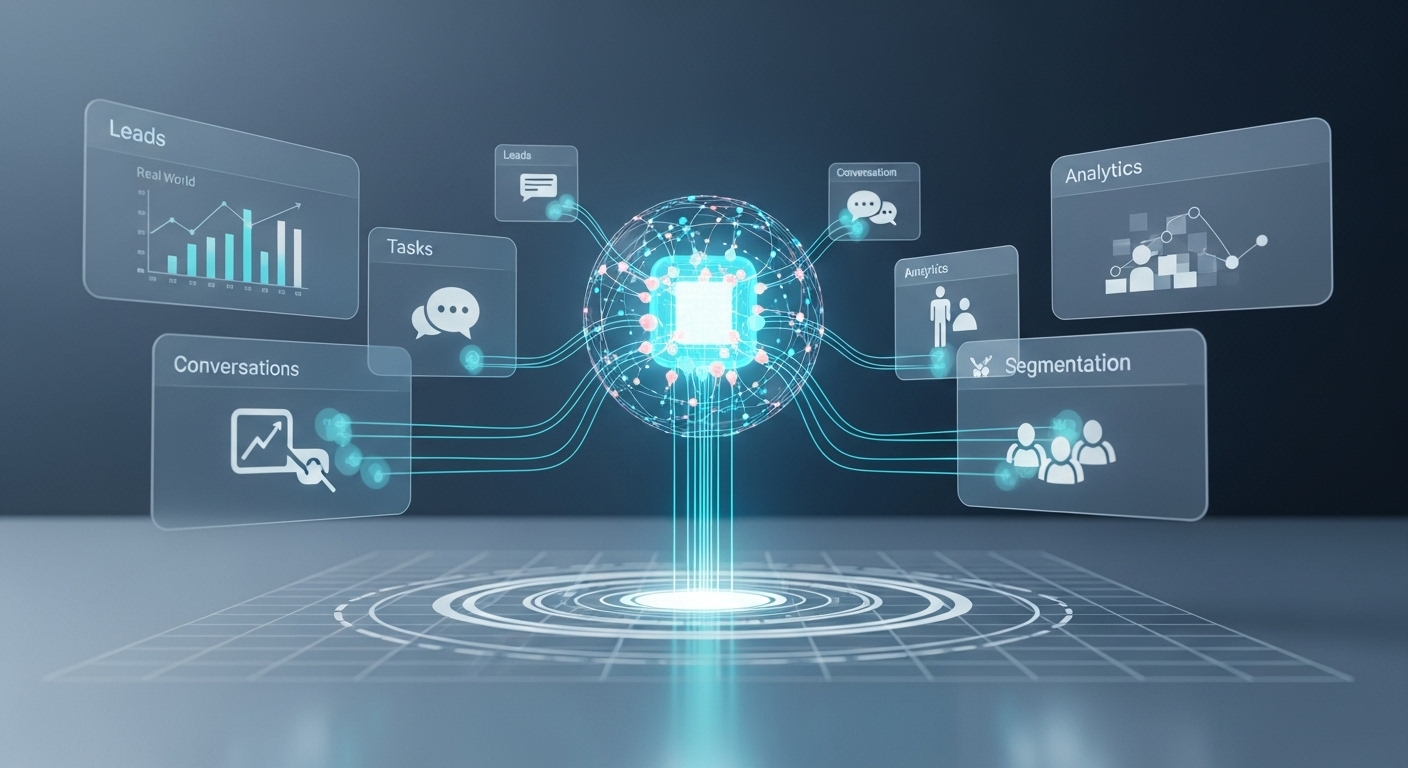 This is the brain of your system. CRM Core stores leads, updates records, tracks conversations, assigns tasks, scores leads, and syncs every module together.